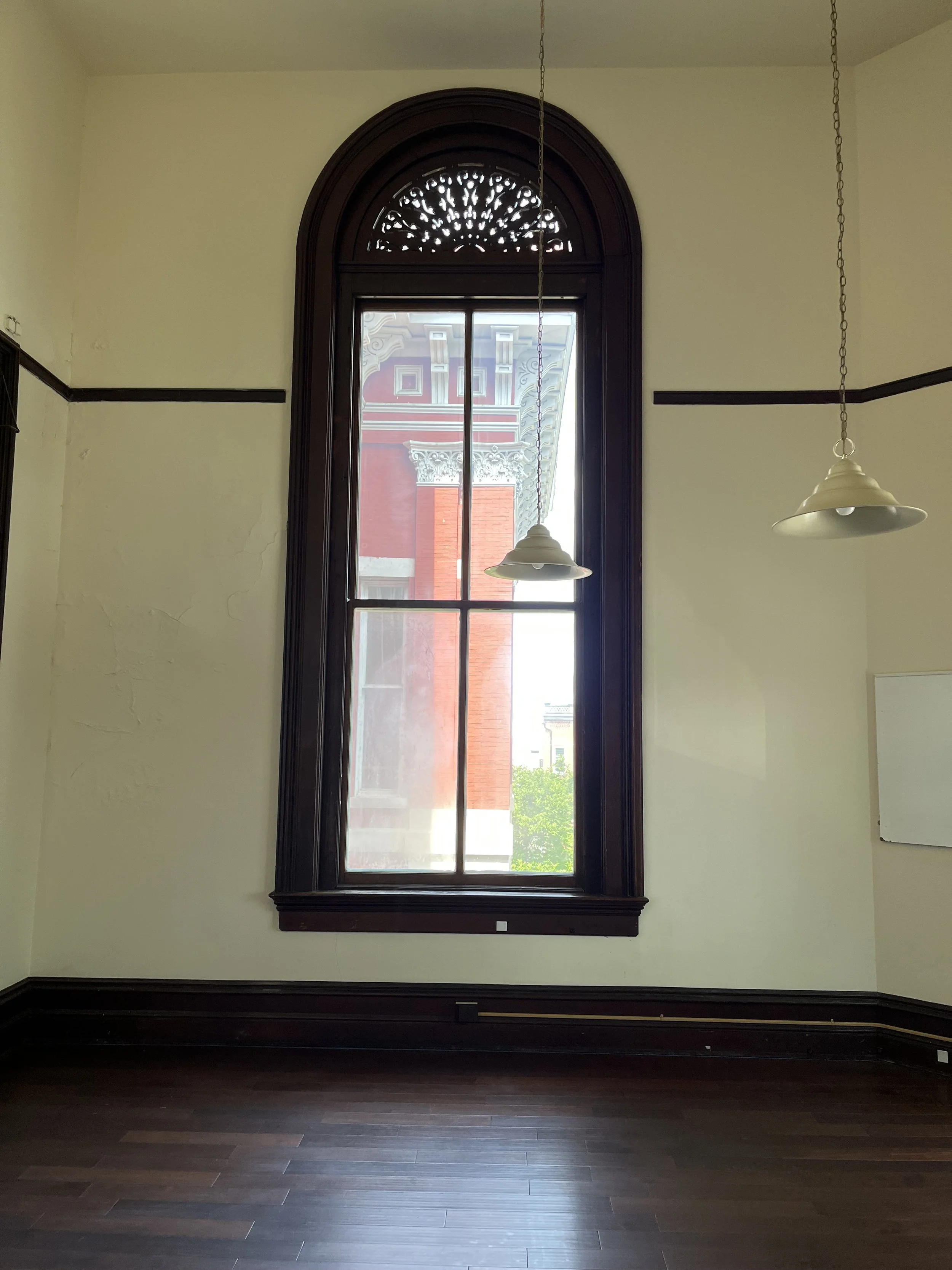 Suite 300 is a 296-square-foot office located on the 3rd floor of the historic courthouse. The space offers a single, open room with two large windows that fill the space with natural light. This compact suite is perfect for professionals looking for a simple, efficient workspace. The layout is versatile, allowing for easy arrangement of desks or workstations. This space provides a functional environment ideal for small businesses or individual offices. Rent is $509.00/month.